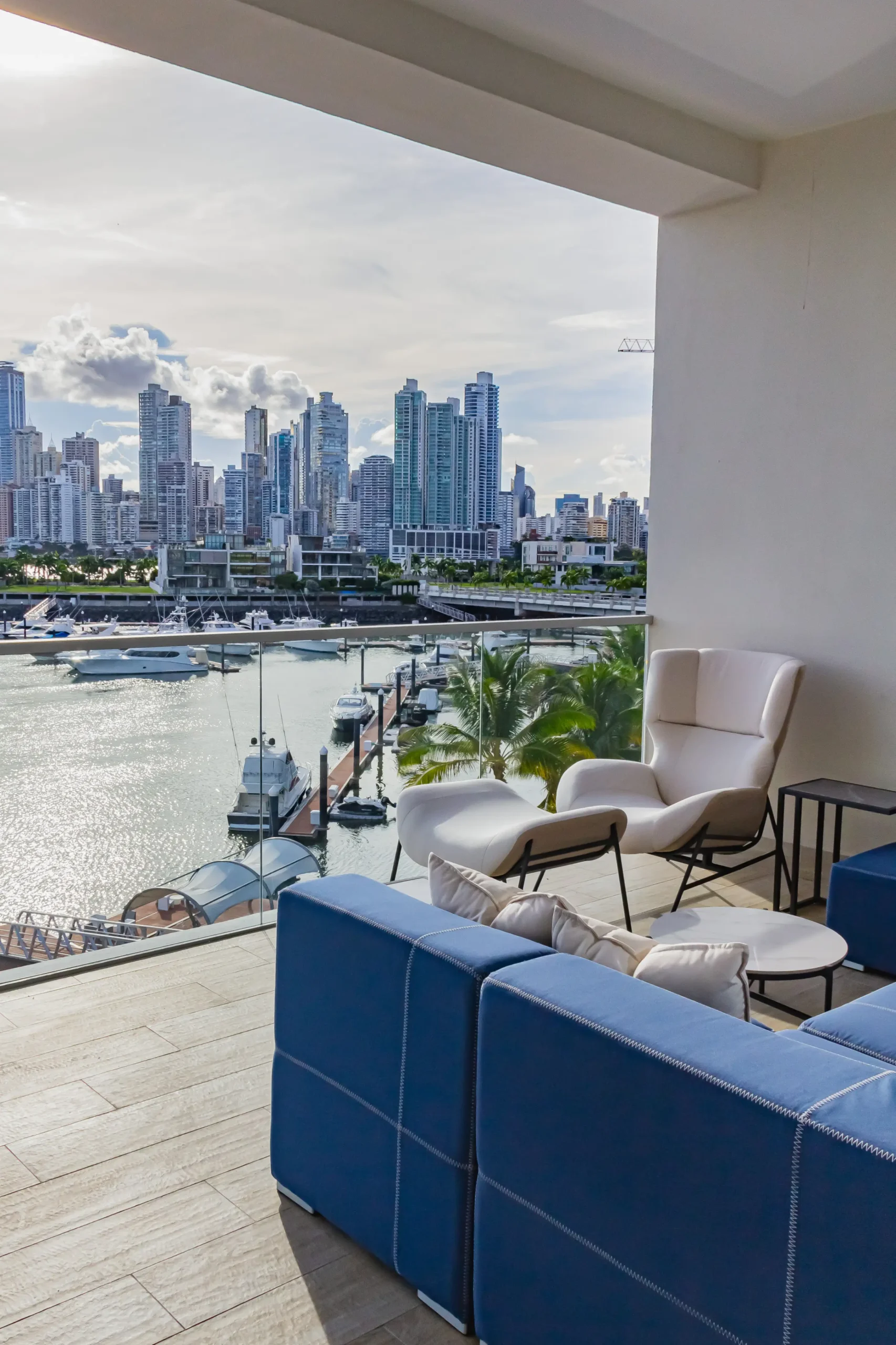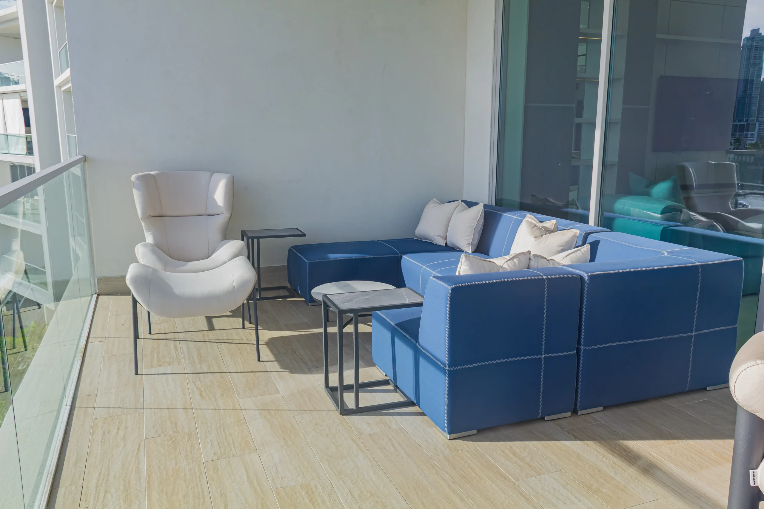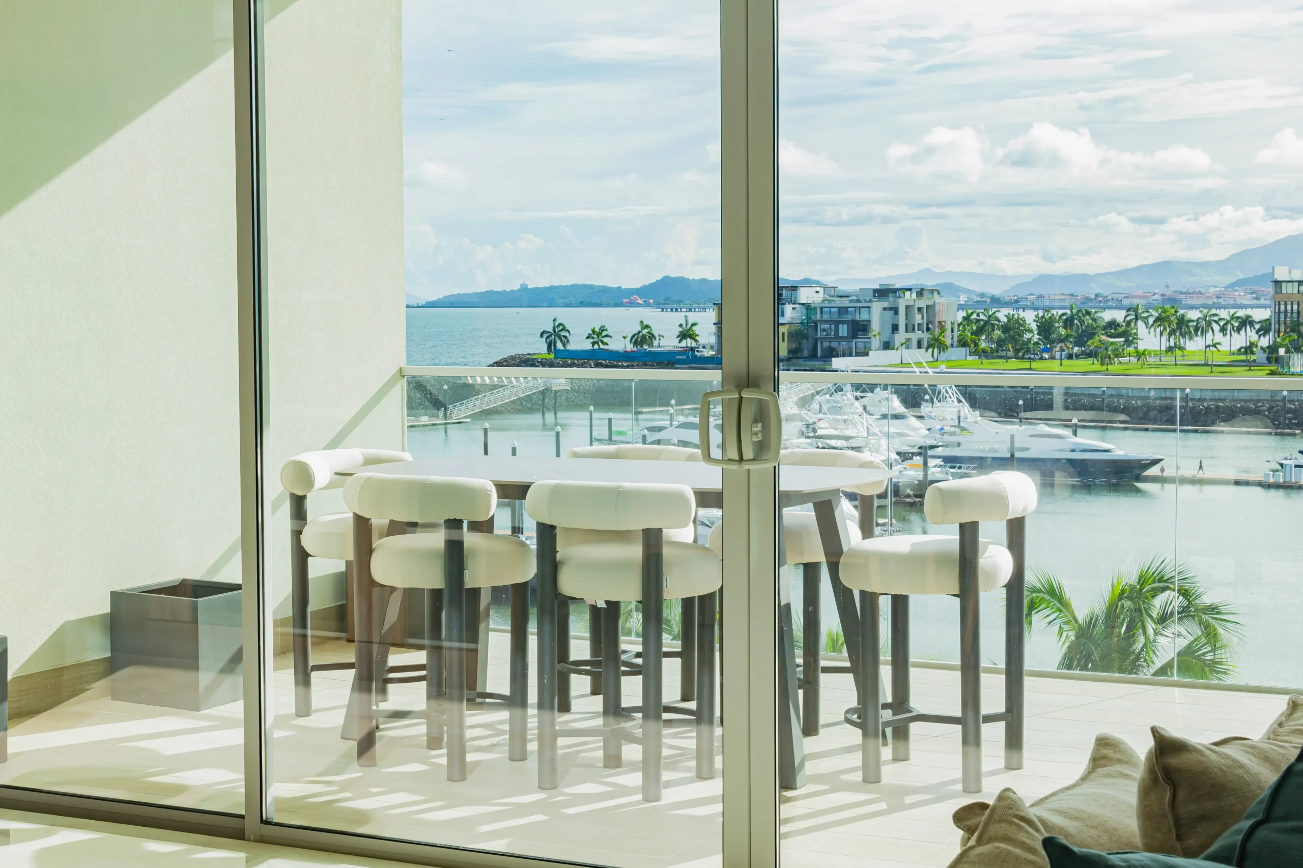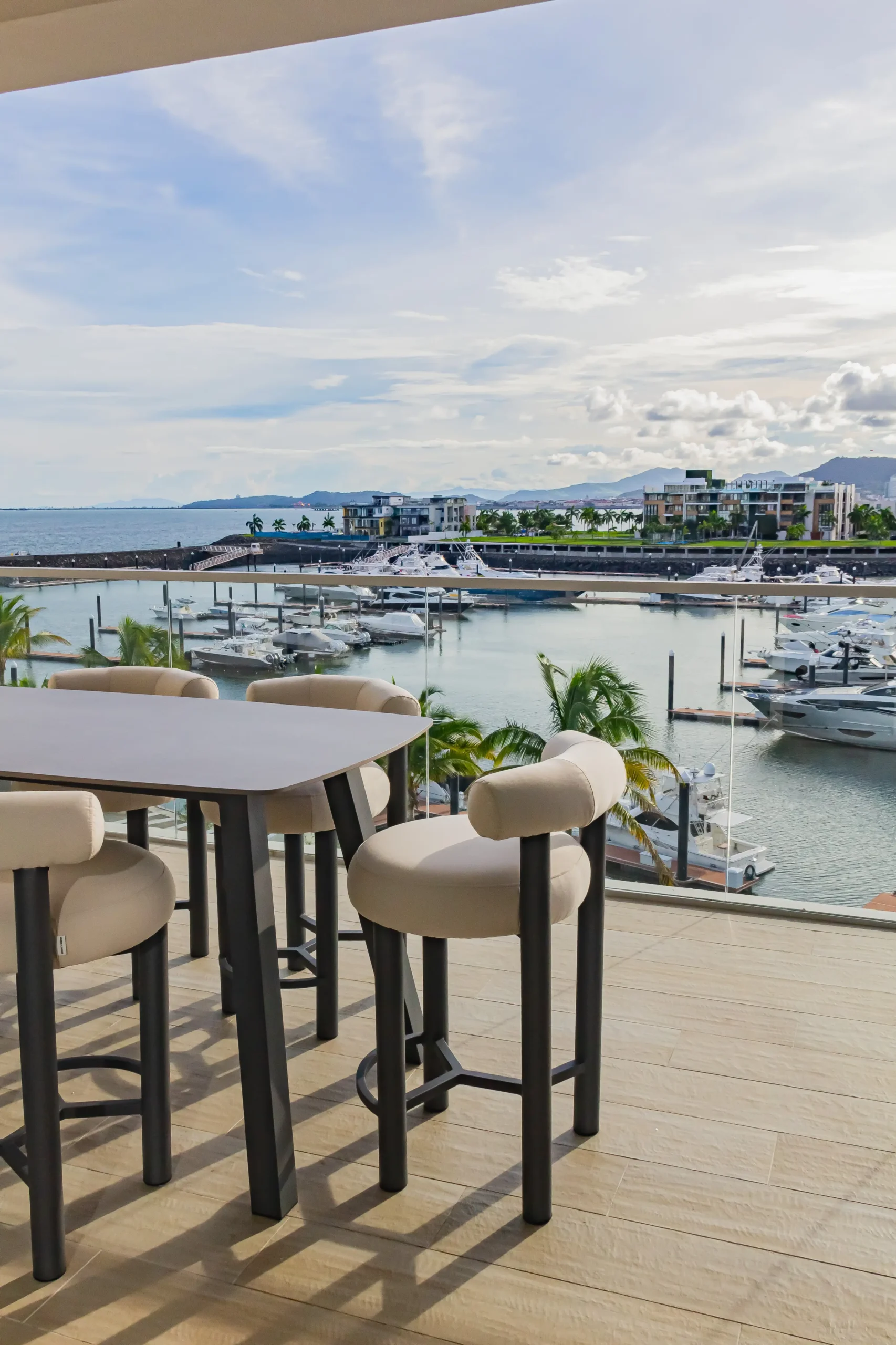 Where clean architectural lines and a restrained material palette establish a sense of calm continuity. Custom paneling and integrated millwork define the spaces with precision, while layered lighting enhances both functionality and ambiance. Floor to ceiling openings dissolve the boundary between interior and exterior, allowing natural light and ocean views to become an intrinsic part of the living experience. Throughout, bespoke TV units and concealed storage solutions reinforce a language of clarity and order.